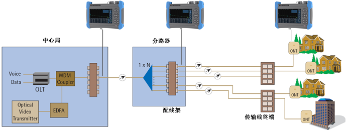 6422是光纖接入網(wǎng)及FTTx的測試儀器,內(nèi)置有PON網(wǎng)絡(luò)測試功能,能夠透過多達(dá)1:128的光分路器,可以實(shí)現(xiàn)對PON網(wǎng)絡(luò)各分支的測試。
